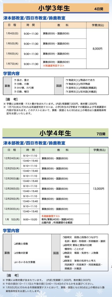 ※ メールでのお申し込みの方は、「冬期講習 希望」とご入力ください。
