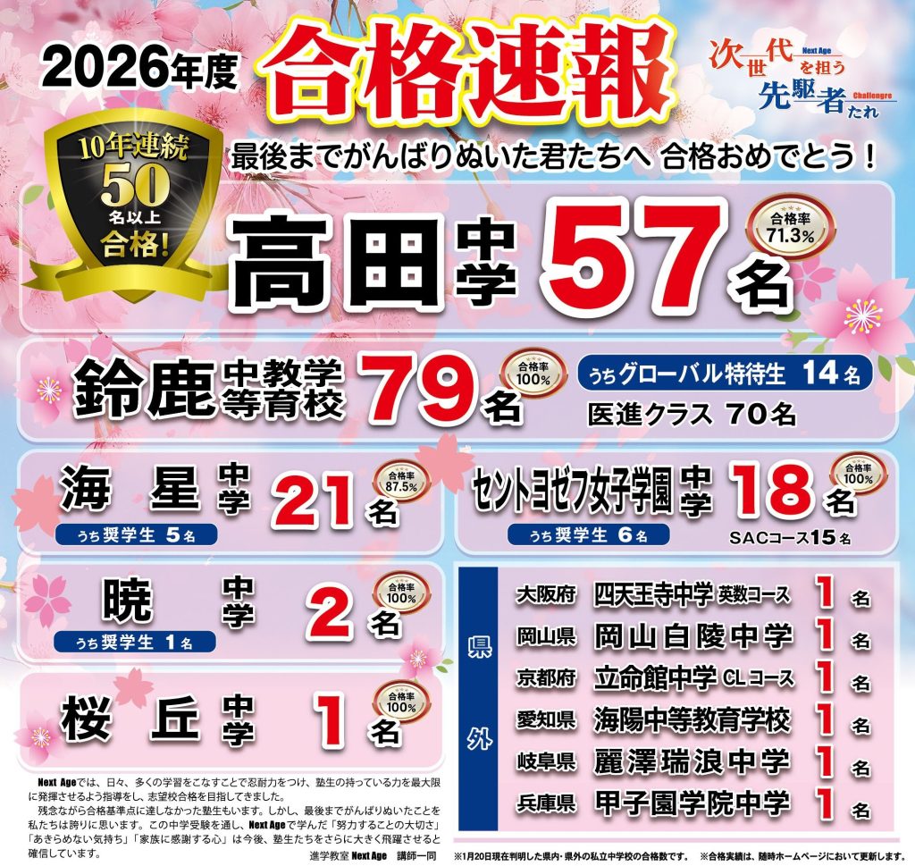 2026年度 合格速報(1/20判明分)